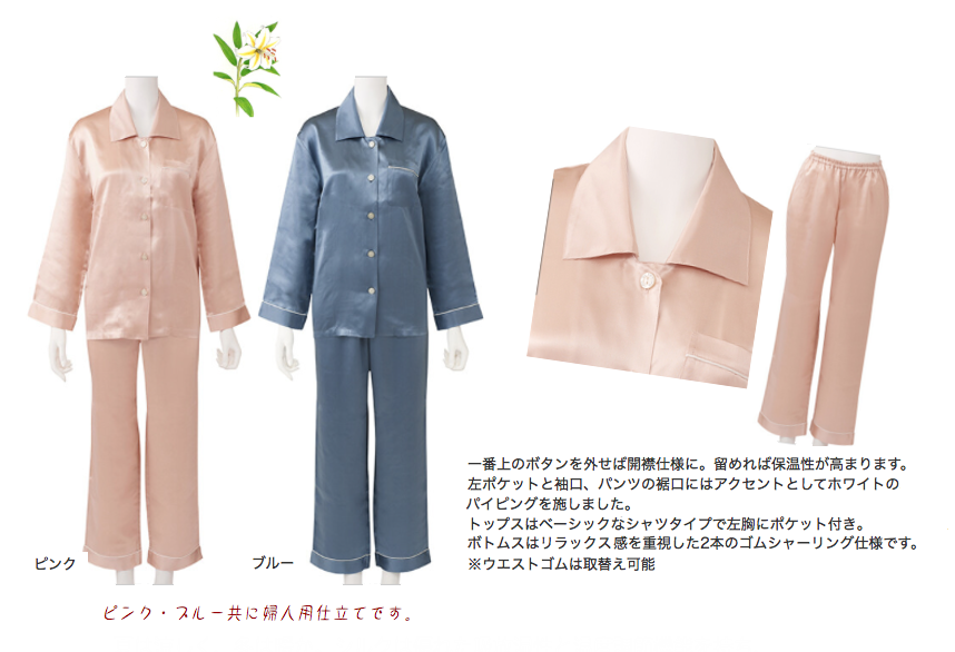 繊維の女王、天然長繊維シルクサテン100%を使用高い吸湿放湿性を持ち軽くて暖かく、肌触りと着心地からリピーターが多いです。