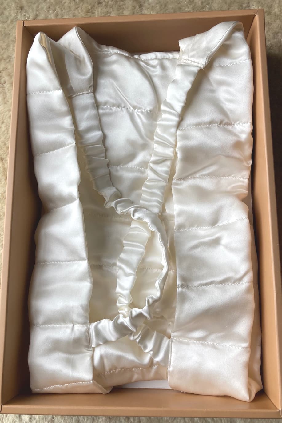 ② 軽くて柔らかく、しかもどんなに寒い日でもほどよい体温を保ち続ける保温性が抜群に優れている。肩こりもせず、1日の疲れをときほぐしてくれます。