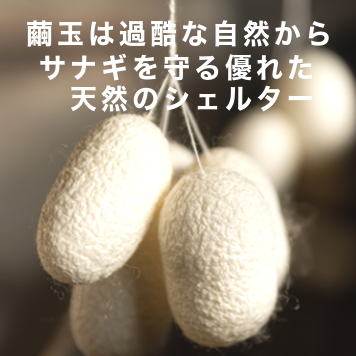 ③ 真綿の糸は、蚕の吐いたそのままの糸で、短く切れていません。千メートル以もある長い糸がもつれあって温かさが生まれてきます。強さの特性もこの絡みありにあります。