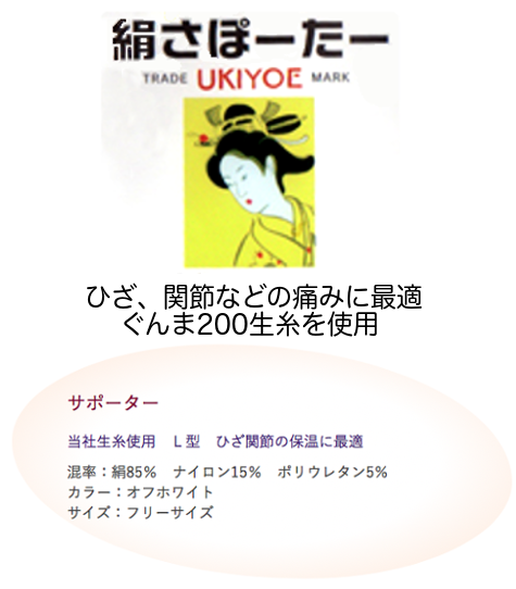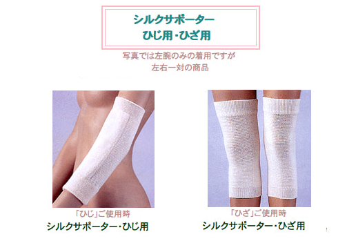 *シルクは軽く暖かい素材で繊維として含気量が多く熱を伝えにくい上、柔らかい繊維です。素肌に直接当ててご使用いただくのに、とても適しています。つまり、多くの細い繊維の集まりである絹は、その中に熱伝導率が低い空気の部屋が沢山あるので、保温性が良く、ひざを暖かく包みこみますので、冷えの予防にもぜひお役立てください。